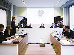 … dass die Rechtswissenschaftliche (REWI) Fakultät an der Uni Graz als erste REWI-Fakultät in Österreich einen eigenen Verhandlungsraum für „Moot Court“ eingerichtet hat? Im Rahmen einer simulierten Gerichtsverhandlung nehmen Studierende unterschiedliche Rollen ein und versuchen, den Standpunkt der von ihnen vertretenen Partei durchzusetzen. Gemeinsam mit Teamkolleg:innen müssen u.a. Schriftsätze verfasst und eine Jury überzeugt werden.