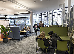 … dass die im vergangenen Jahr geschlossene Mensa am Sonnenfelsplatz kürzlich in einen neu gestalteten Lern- und Begegnungsraum für Studierende umgewandelt wurde? In enger Zusammenarbeit mit Studierenden entstand der sogenannte „Mensa Space“ mit rund 130 Sitz- und Arbeitsplätzen. Der neue Bereich bietet unterschiedliche Lernzonen und eine Lounge mit Snack-Automaten und Mikrowellen. Seit dem 28. Jänner ist dieser Lern- und Treffpunkt an allen Wochentagen rund um die Uhr für Studierende und Bedienstete der Universität Graz mittels UNIGRAZcard zugänglich.
